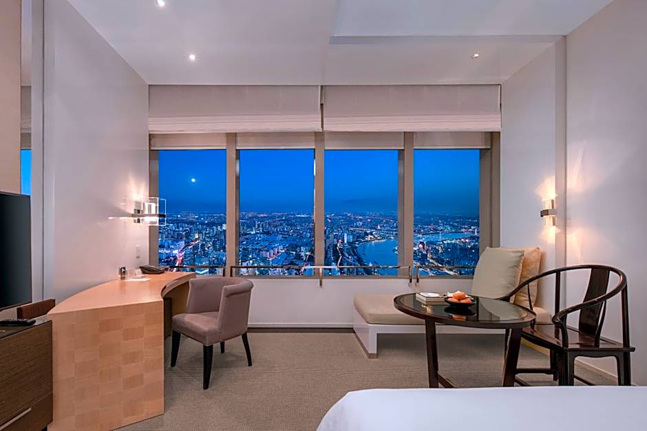 Located from Floor 79 to 84, the modern Chinese-style room with size of 55-60 offers expansive Huangpu River view in the heart of Shanghai. It features a king-size bed, a daybed, walk-in dressing rooms and an private bathroom with a large rain shower and a deep-soaking tub. Amenities include 24-hour in-room dining, an in-room espresso machine, a flat-screen TV and free Wi-Fi.